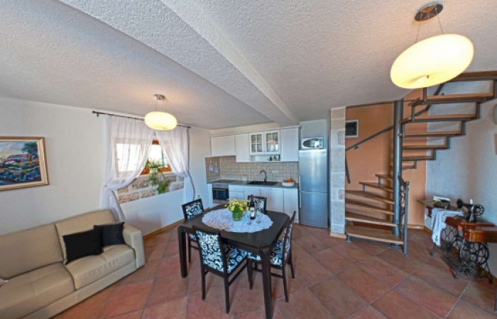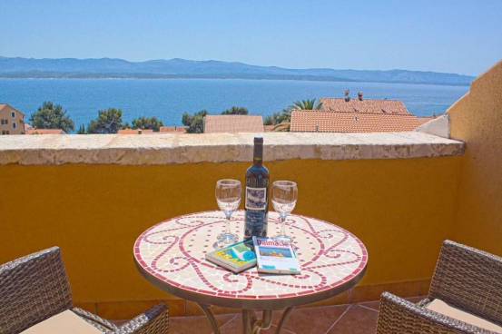 Luxury apartments at Villa Mare for up to five persons. Newly renovated in 2012, Villa Mare is a traditional stone house with swimming pool in a quiet part of Bol. The nearest beach (distance 300 m) and the town centre (250m) are only a short stroll away. It has parking, a terrace overlooking Bol and the sea, and an outdoor kitchen. Indoors it features a kitchen, living room which opens onto the terrace. Upstairs are two bedrooms with private bathrooms and a balcony. One bedroom has a doublebed, the other two single beds. On the second floor is a studio room with a couch, that can sleep another person and a loggia with stunning views. All rooms are air conditioned. The villa has two plasma TVs, satellite TV, home entertainment centre, wifi internet access, wall safe, coffee maker, hair dryer, ironing board with iron, washing machine, dishwasher. Minimal stay is three nights.